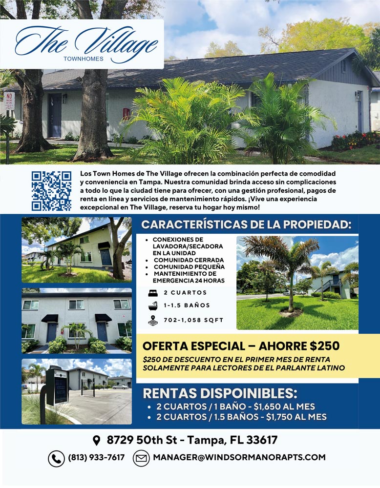 Tiene baño, cocina con hornilla y nevera, closet, laundry y parqueo. Precio $1,000 más depósito de $500, incluye utilidades e Internet. Más información al (813) 842-8593 ó (813) 841-4122